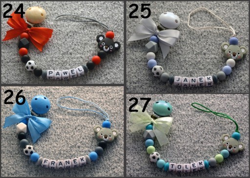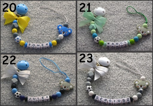 Na innej naszej aukcji, można również dokupić silikonowy gryzak w różnych kolorach i wzorach.