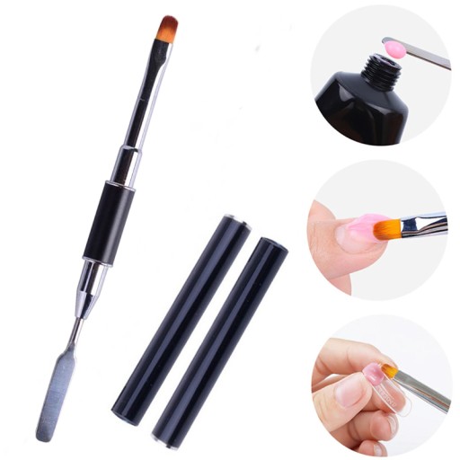 - końcówkę zakończoną pędzelkiem ze zbitym włosiem – rozciągniesz nią produkt po płytce i zbudujesz odpowiedni kształt.