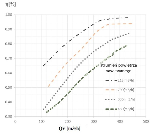 - SPRAWNOŚĆ REKUPERATORA OD 65% do 92% (parametr zależy od różnicy temp.przepływu )