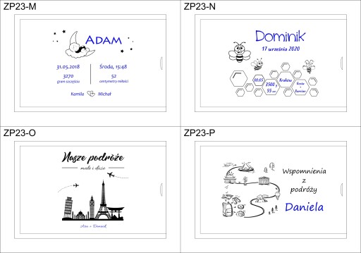 Przy finalizacji zakupu prosimy podać w wiadomości dla sprzedającego numer projektu oraz własny tekst (imiona, data, dedykacja) zaznaczony na szablonie niebieską czcionką.