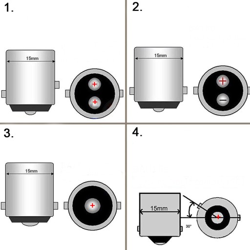 - Symbol trzonka: P21W, BA15S (1 włóknowa tzn jeden bolec dolny, symetryczne bolce boczne na tej samej wysokości, biegun + na dolnym bolcu, biegun - na obudowie)