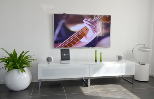 - można postawić go standardowo na podłodze, na nogach, a także powiesić na ścianie, za pomocą firmowych zaczepów z regulacją poziomowania