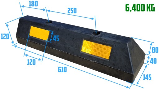 Wymiary separatora parkingowego: Długość 1830mm, szerokość 145 mm, wysokość 120 mm, Waga: 19 kg