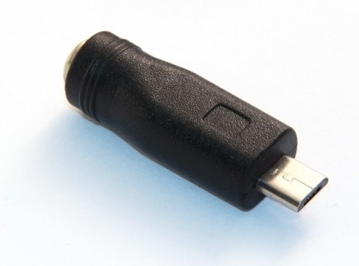 Adapter, gniazdo DC 2,1/5,5 na wtyk micro USB-B.