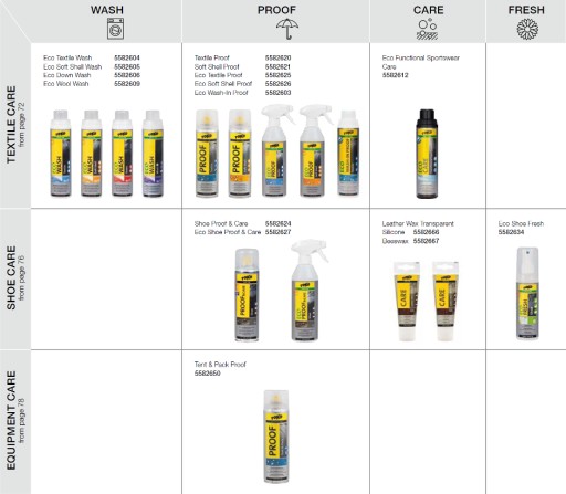 Woski, narzędzia i produkty do pielęgnacji odzieży gwarantują, że narty, deski, tekstylia i obuwie idealnie spełnią swoje funkcje. Użycie odpowiednich smarów sprawia, że narty i deski uzyskują jeszcze lepszy poślizg. Ostre krawędzie zadbają o bezpieczeństwo. Prawidłowe pranie i impregnacja odzieży pozwala jej oddychać i zapewnia nieprzemakalność.