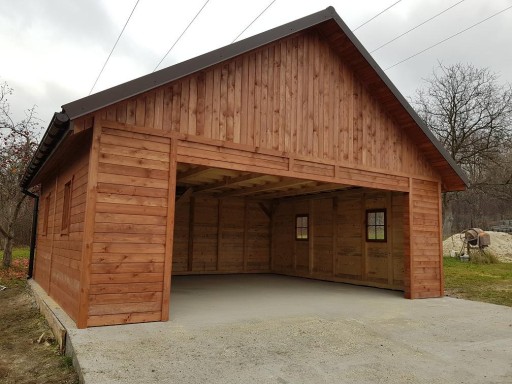 Garaż wykonany jest techniką szkieletową, oparty na konstrukcji o przekroju 12x12, co gwarantuje solidność oraz trwałość.