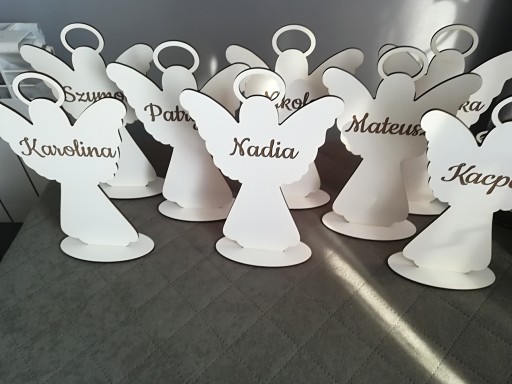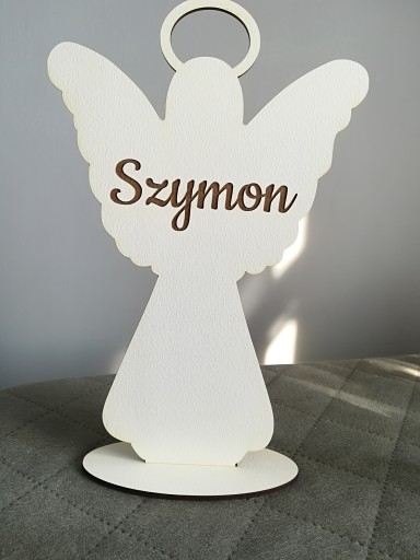 Biały aniołek z imieniem dziecka , dekoracja na Komunię świętą.