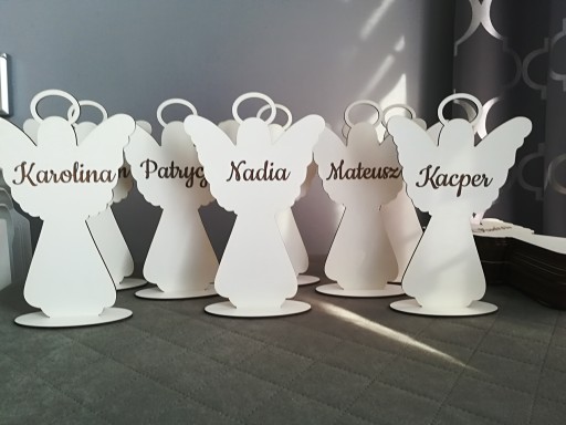 Anioł z imieniem dziecka na Komunię Świętą Chrzest