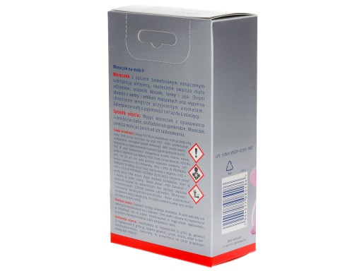 Woreczek skutecznie zwalcza mole odzieżowe (osobniki dorosłe, jaja i larwy) w szafach i garderobach. Nadaje delikatny zapach działa nawet do 6 miesięcy!