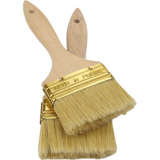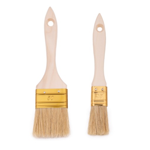 Pędzel angielski płaski z wąskim włosiem służy do precyzyjnego nakładania farb i lakierów.