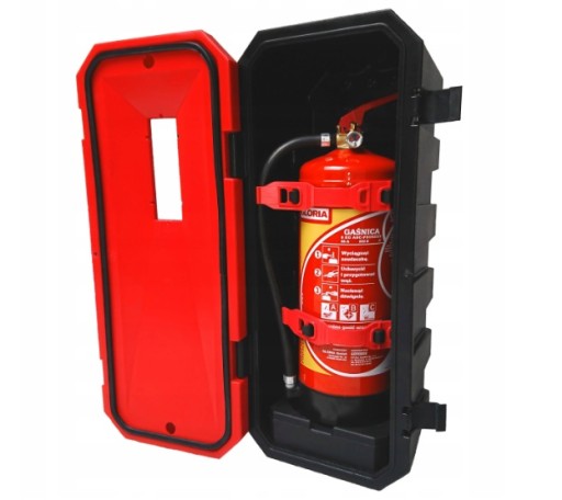 Hermetyczny pojemnik do przechowywania i ochrony gaśnicy proszkowej 6kg, przystosowany do montażu zewnętrznego.