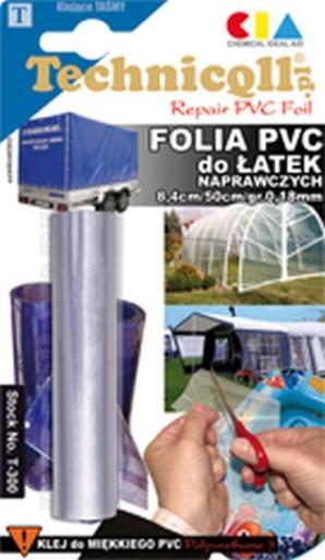 Folia PVC do wycinania łatek naprawczych wykonana jest ze specjalnego, bezbarwnego tworzywa umożliwiającego łatwe, niewidoczne i mocne naprawy uszkodzeń powstałych w przedmiotach wykonanych z PVC. Dzięki wysokim parametrom można ją stosować tak wewnątrz jak i na zewnątrz, w domu, ogrodzie, nad wodą i wszędzie tam, gdzie niezbędna jest pomoc.