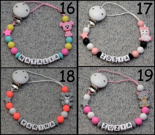 Na innej naszej aukcji, można również dokupić silikonowy gryzak w różnych kolorach i wzorach.