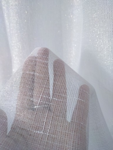 Oferujemy Państwu firankę o strukturze lnu- "SZRON" . Błyszcząca tkanina jak śnieg na Arktyce.