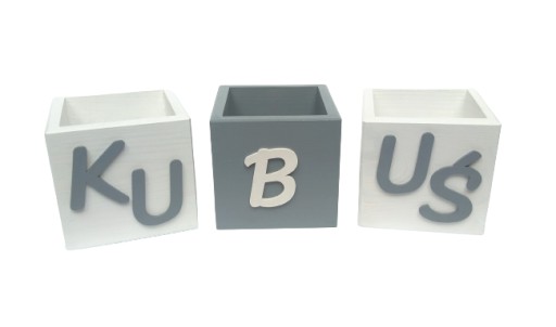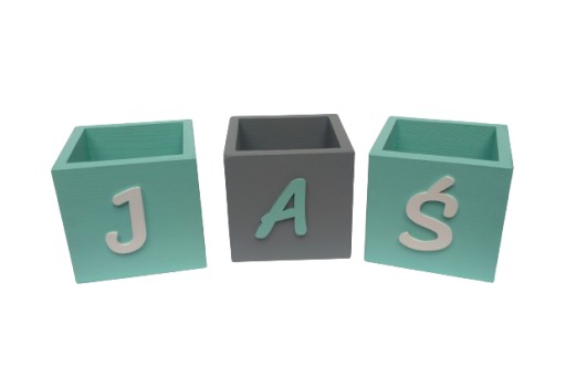 Na kubeczku można przykleić jedną lub dwie literki, w przypadku więc imion zarówno 3 jaki i 5 literowych proszę zakupić 3 kubeczki.