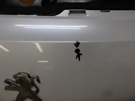 Klapa ma przewierconą dziurę, niewielkie pęknięcie wzmocnienia tylnego, lampa jest uszkodzona, co widać na zdjęciach.