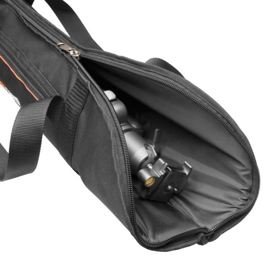 Uniwersalny pokrowiec na statyw fotograficzny o maksymalnej długości 90cm. Dodatkowo pokrowiec może pomieścić 1-2 parasolki, oraz mniejsze akcesoria w zewnętrznej kieszeni. Wnętrze zostało wyłożone gąbką i wykończone tkaniną poliestrową oraz siatką, dzieki czemu pokrowiec należycie zabezpiecza przenoszony sprzęt.