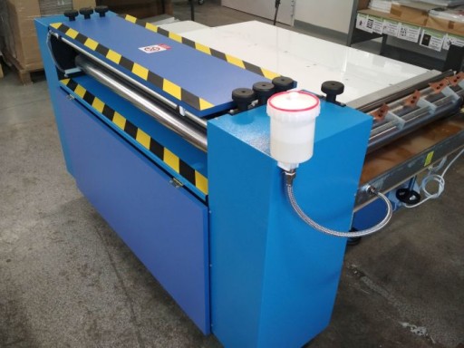 Półautomatyczna maszyna do produkcji oprawy twardej, obsługiwane przez jedną osobę. Wyciętą na żądany wymiar oklejkę operator wsuwa na wałki nakładające zimny lub gorący klej. W razie potrzeby oklejka umieszczana jest przy ogranicznikach ułatwiających precyzyjne przyklejenie tektury, po tej operacji wsuwa oprawę pomiędzy wałki, oprawa jest wciągana i wraca z powrotem na stół z zawiniętymi z dwóch stron bokami. Następnie oprawa jest obracana o 90 stopni i ponownie wsuwana pomiędzy walce, okładka może wrócić na stół lub może zostać wysunięta na stolik znajdujący się z drugiej strony maszyny.