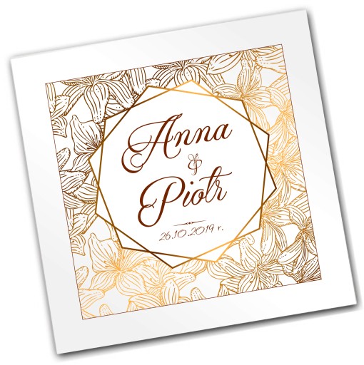 - po dokonaniu zakupu otrzymasz od nas drogą mailową formularz do wypełnienia, w którym prosimy o podanie danych dot. wzoru graficznego, sentencji, wzoru tekstu, listy gości, daty, godziny, miejsca ślubu, wesela itd.
