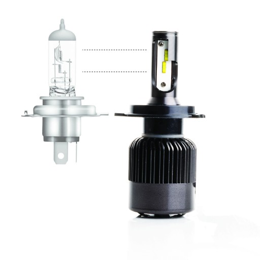 - diody umieszczone są na tej samej wysokości jak żarnik w żarówce halogenowej