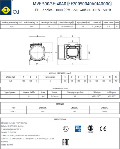 SILNIKI WIBRACYJNE OLI-WAM seria MVE 500/3:
