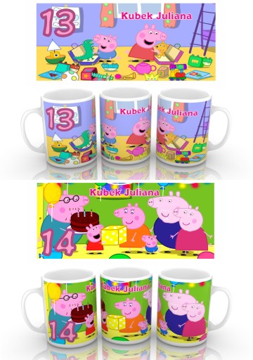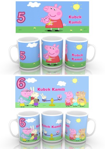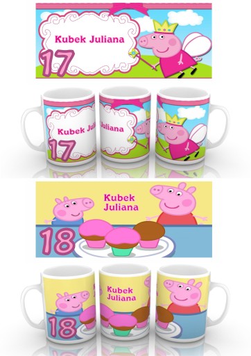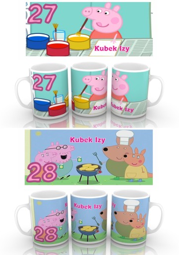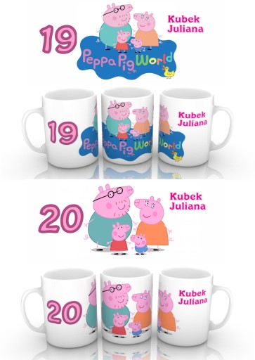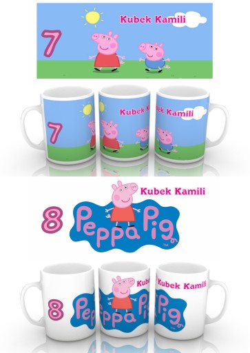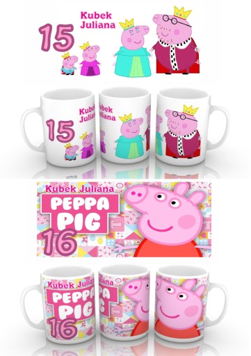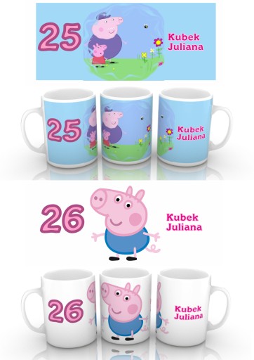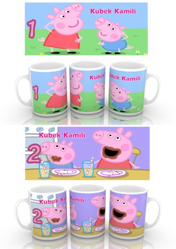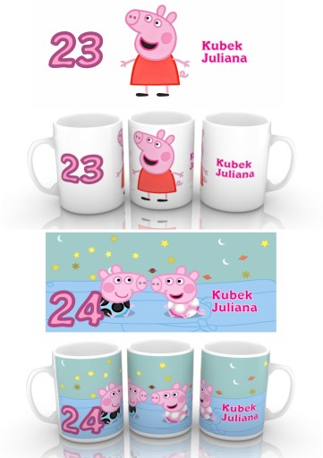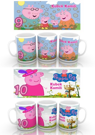 FOTO KUBEK CERAMICZNY - ŚWINKA PEPPA z gotowymi wzorami do wybrania z własną ksywką-imieniem.