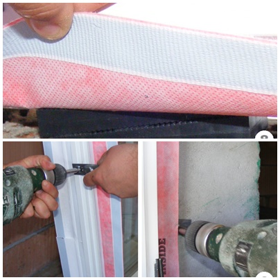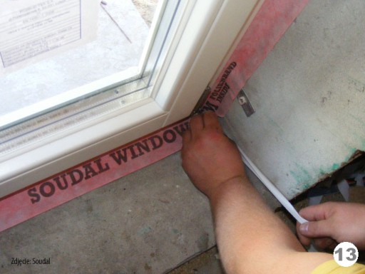 4. Przyklejanie taśmy paroprzepuszczalnej do ościeża na zewnątrz