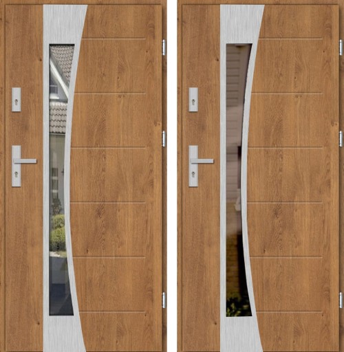 • drzwi z blachy pokrytej folia dekoracyjną PCV pasującą do stolarki okiennej ,