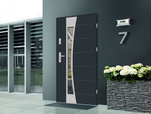 Drzwi wykonane zostały z blachy pokrytej folia dekoracyjną PCV co sprawia, że idealnie pasującą do stolarki okiennej.