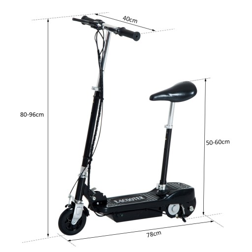 Elektryczna hulajnoga. Urządzenie posiada 120 Watowy silnik, dzięki któremu poruszać się możemy z prędkością do 12 km/h. Hulajnoga jedzie gładko, cicho i jest przyjazna dla środowiska. Zaopatrzona została w baterię która działa od 6 do 8 godzin. Hamulce znajdują się z tyłu, a hulajnoga ma solidną , składaną, aluminiowa/metalową ramę. W-wa. Kolor: czarny, czerwony, czarno-czerwony. NOWA!!! Wymiary: 74 x 36 x 86 cm (dł. x szer. x wys.)Opony: 13.75 cm (5.5 ")Wysokość siodełka Maksymalny ciężar: 80 kg. Silnik: 120 W, 12 km/h.