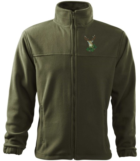 MYŚLIWSKA BLUZA POLAROWA CIEPŁA KHAKI - HAFT JELEŃ