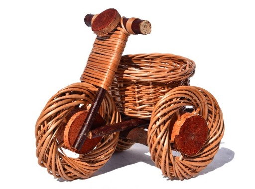Ozdoba wiklinowa w kształcie rowerka, doskonały gadżet do postawienia na parapecie, przed domem lub w ogrodzie. Mały piękny rowerek z praktyczną doniczką.