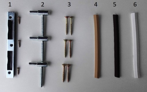 - Blachę zaczepową z wkładką plastikową wraz z wkrętami