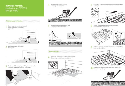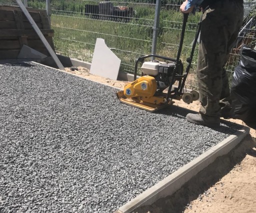 - Wypełnione kratki można ponownie zawibrować zagęszczarką z nakładką gumową, dzięki czemu kruszywo równomiernie się rozłoży.
