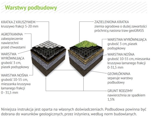 - Kratki należy całkowicie zasypać kruszywem. Pozostawienie niewypełnionych może doprowadzić do ich uszkodzenia podczas eksploatacji.