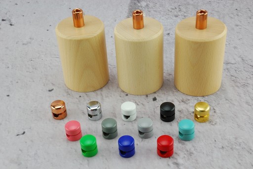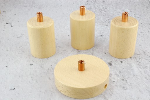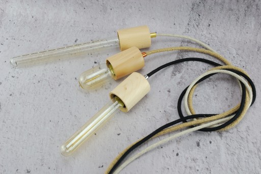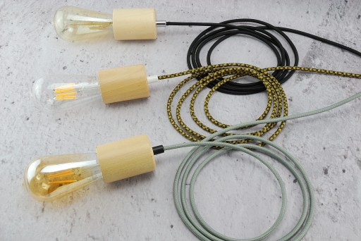 Kupując jedną sztukę otrzymujesz jedną drewnianą osłonkę, jedną oprawkę oraz jedną blokadę przewodu. Przewody, żarówki, podsufitki widoczne na zdjęciach umieszczone są w celu aranżacji, można je zakupić na pozostałych naszych aukcjach.