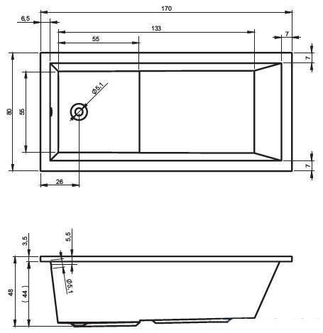 RIHO LUSSO PLUS ВАННА 170x80 + НОЖКИ + СИФОН BA12