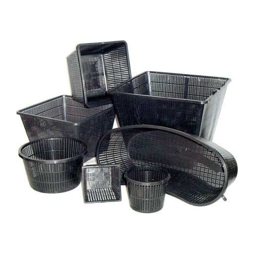 Kosz na rośliny wodne przystosowany do wygodnego sadzenia roślin w oczku wodnym i umożliwia ich łatwe usunięcie w razie potrzeby. Struktura koszy zapobiega niekontrolowanemu wzrostowi roślin i przerastaniu korzeni.