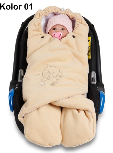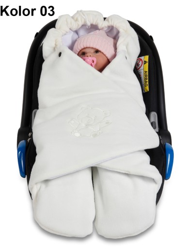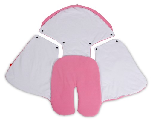 - Śpiworek przeznaczony jest do wózków w wersji gondolowej, spacerowej, fotelików samochodowych, nosideł, huśtawek oraz bujaczków.