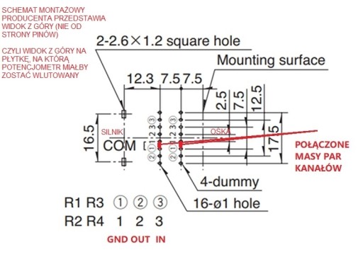 Potencjometr czterokanałowy o charakterystyce liniowej z silnikiem.
