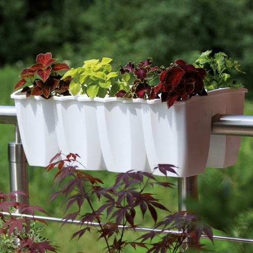 Doniczki serii Crown są bardzo łatwe do zamocowania na balkonie dzięki wgłębieniu w swojej podstawie oraz specjalnym uchwytom.