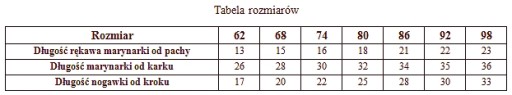 Garniturki dostępne są w rozmiarach od 62 do 98.