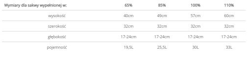 *Sakwa wypełniona 33-35L bagażu zachowuje tylko bryzgoszczelność (tak zapakowane sakwy widać na zdjęciach na motocyklu Honda CRF1000), w pozostałych przypadkach jest w pełni wodoszczelna, również w zanurzeniu, zamykając sakwę należy w pełni wypuścić z niej powietrze.