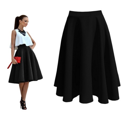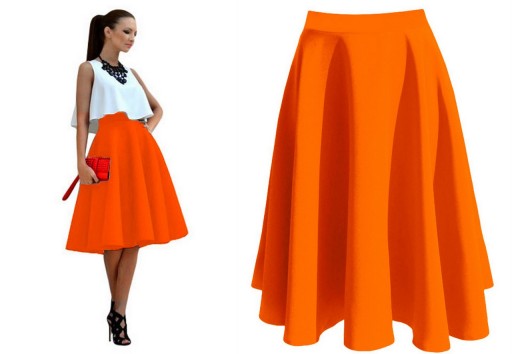 ELEGANCKA SPÓDNICA z KOŁA ROZKLOSZOWANA MIDI ROZKLOSZOWANA