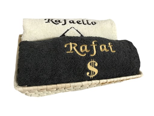 Komplet dwóch ręczników 70x140 w ozdobnym koszu z własnym haftem w postaci imienia, ksywki, krótkiej dedykacji, bądź swojego indywidualnego tekstu.