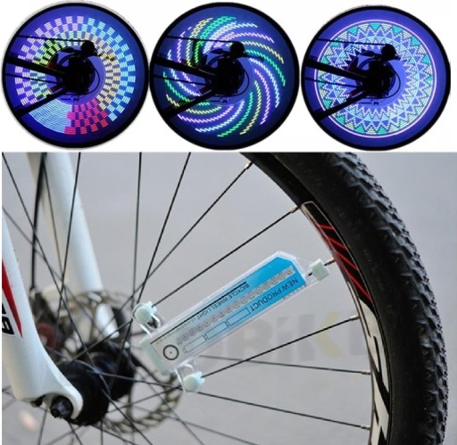 - Ruch koła powoduje włączenie lampki na szprychy, która poprzez różne sekwencje diód led wyświetla na kręcącym się kole różne wzory.