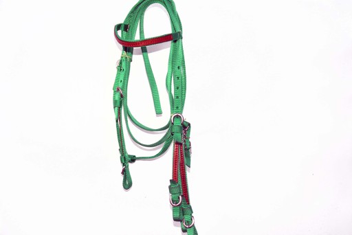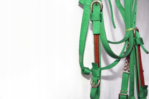 Ogłowie Western +wodze roz. Full .Ogłowie wyprodukowane w zakładzie w Teksasie .Wykonane z najwyższej jakości taśmy bardzo miękkiej i miłej w dotyku , naczółek i paski policzkowe zdobione wstawkami skóry .Ogłowie zapinane i regulowane jest na stabilne sprzączki , wykonane z bardzo dobrej nierdzewnej stali szlachetnej . Zapraszam do zakupu.