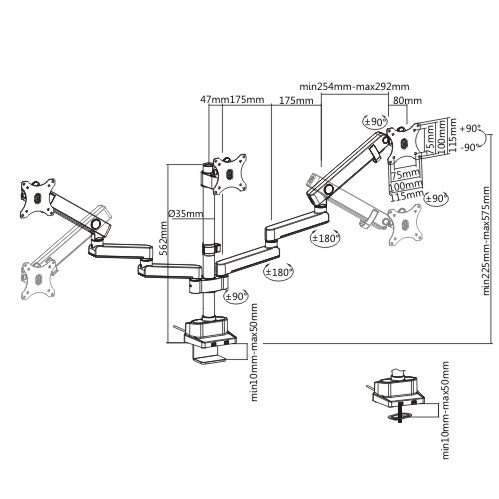 Ramiona wykonane zostały z wysokiej jakości aluminium. Wyposażone są w wytrzymałą klamrę montażową, która umożliwia mocowanie do blatu lub innych powierzchni płaskich. Idealne do zastosowania m.in. w biurze i domu - bez wiercenia dziur w biurkach lub ścianach.