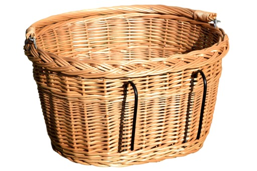 Kosz wiklinowy na rower na haki - doskonale nadaje się na wycieczki rowerowe, zakupy, do wożenia psa, kota. Bardzo solidna konstrukcja zapewnia wożenie zakupów w bezpiecznej i wygodnej pozycji. Kosz umieszcza się na przedniej części kierownicy za pomocą metalowych odpowiednio wygiętych prętów zabezpieczonych specjalnym tworzywem sztucznym.