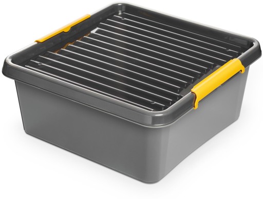 Bardzo mocny pojemnik w kształcie kwadratu o pojemności 18 l, wykonany z wytrzymałego plastiku. Idealny do przechowywania różnych przedmiotów. Świetnie sprawdzi się zarówno w domowej garderobie jak i w warsztacie majsterkowicza.